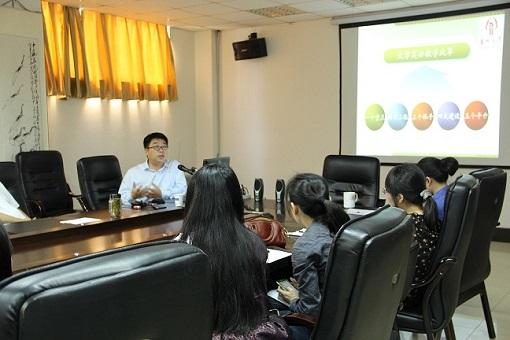 秦旭教授就扬州大学精品视频共享课程的建设、大学英语教学的改革创新做了详细的报告和分析。